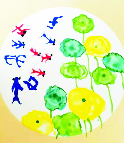 这时,妹妹指着东边兴奋地说:“看,太阳快出来了!”我们便不约而同地盯着东方的天边,只见东边的天越来越红,一个巨大的、圆圆的、鲜红的火球露出半张脸,它像负着重荷似的慢慢上升,在它的不懈努力下,终于爬上了山顶,发出了光芒四射的亮光,将整个红崖观染的又红又亮。太阳越升越高,不知是谁把一块黑云戴到太阳头顶,太阳生气地扯开黑云,发出更耀眼的光芒,绚丽的光华照亮每一个角落。