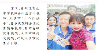 蒲涓,秦州区育生中学教师秦州区骨干教师,天水市“三八红旗手”,曾多次获得全国优秀辅导教师,甘肃省级优课奖项,天水市级论文奖项,以及天水市优秀团干部。