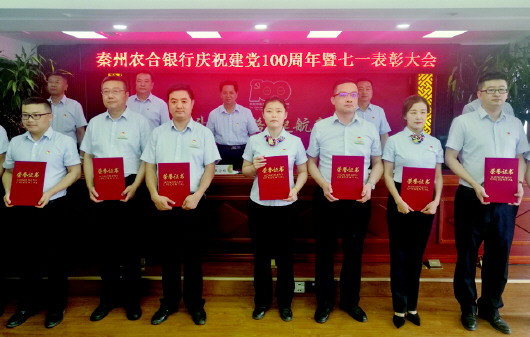 ▲6月23日下午,天水秦州农村合作银行举办庆祝建党100周年暨“七一”表彰大会,全体党员重温入党誓词,对4个先进基层党支部、36名优秀共产党员、18名优秀党务工作者进行了表彰奖励。
