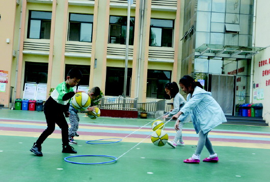 “现在,校园里大班的孩子们正在开展的是以‘我运动 我健康 我快乐’为主题的户外体能大循环活动,其中包含了走、跑、跳、钻、爬、投掷这些基本动作。”赵英说,他们初步设计了:单脚连续跳、走平衡木、攀爬架、推小车、S形跑等科学化、兴趣化、多元化的体育活动,用来激发幼儿运动兴趣,促进大肌肉的动作协调性以及灵活性,同时也让孩子们学会等待及轮流游戏,学会自觉遵守游戏规则。
