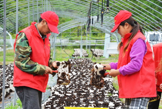 李进娥是产业园聘请的工人,和其他村民无异。但渐渐地,李进娥成了产业园的“联络员”和“技术员”。每次产业园需要工人,李进娥便挨家挨户地去联络村民,组织村民统一到产业园劳动。因为勤奋好学,李进娥也掌握了木耳种植、采摘的的技巧,每次劳动,便不由自主得当起了“技术员”。