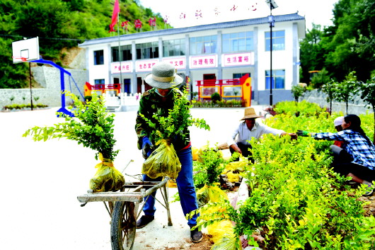 7月24日,甘谷县武家河镇黑吓沟村新建成的党群服务中心前广场上,几位村民正在栽种绿植。近期投用的黑吓沟村阵地占地300平方米,功能完善,满足了村“两委”办公需求,提升了村党支部建设标准化水平。
