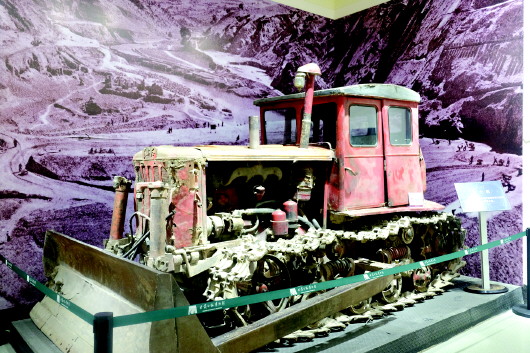 在甘肃公路博物馆,一台陈旧的红色推土机被称为镇馆之宝,它是1971年4月周恩来总理赠送给安西公路段十工道班的东方红75型推土机。推土机的旁边是周恩来总理的雕塑,背后一张放大的1971年5月8日的《甘肃日报》,用近乎二分之一版面详细报道了十工道班落实毛主席《五·七指示》的事迹。