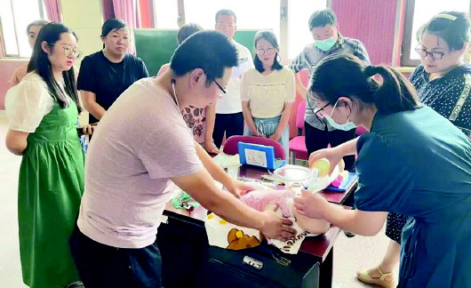 近日,由市卫健委主办、市妇保院承办的2021年全市新生儿复苏项目管理暨师资培训班在该院举办。各县区卫健局、妇幼保健机构项目管理人员以及全市从事新生儿复苏工作的县级师资人员共70余人参加培训。培训采用理论授课与实践操作相结合的形式进行,极大提升了参训人员的理论知识水平和操作技能。培训结束后,全体学员参加了考核,确保“个个掌握、人人过关”。图为讲师一对一指导学员操作。 王元成 摄