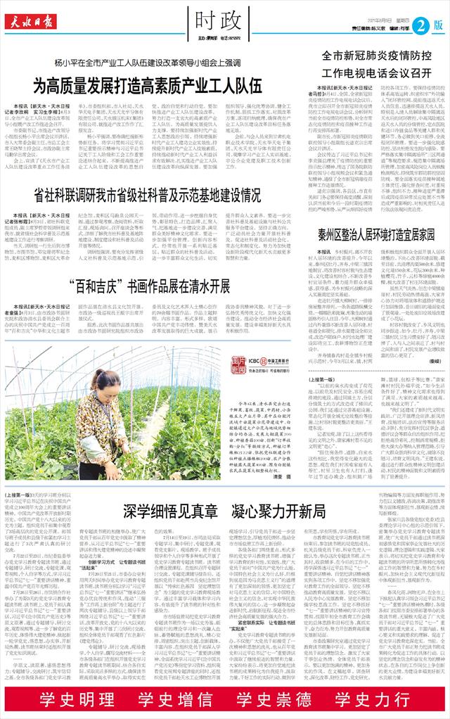 春风化雨,润物无声。在全市上下掀起认真学习领会习近平总书记“七一”重要讲话热潮时,各级各部门按照市委安排部署举办的各类读书班,无疑极大促进了广大党员干部对习近平总书记“七一”重要讲话的重大意义、丰富内涵、核心要义和实践要求的理解,促进了党史学习教育的走深走实。当前,全市广大党员干部正努力把读书班成果转化为促进工作的具体行动,以坚定的理念信念和奋发有为的精神状态,在各自的工作岗位上争创新的更大业绩,为建设幸福美好新天水贡献力量。