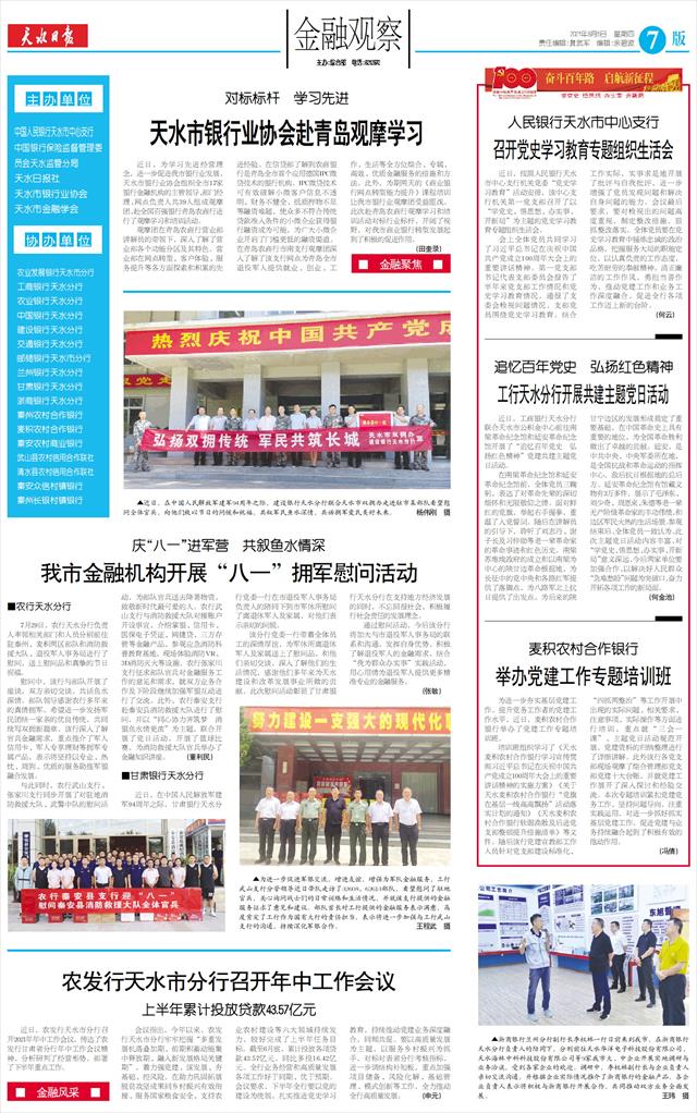 农发行天水市分行召开年中工作会议 上半年累计投放贷款43.57亿元   ■ 金融风采 ■