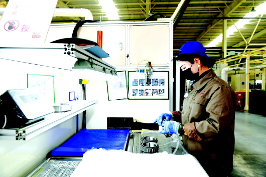 1月13日,甘肃海林中科科技股份有限公司工人正在生产轴承。