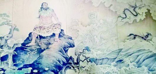 在大地湾,这个新时代的领导人,是建造了总面积达420平方米的巨型宫殿的伏羲及其后人,也可能是曾经为《水经注》《后汉书》《太平御览》等典籍提供大量第一手资料的西汉纬书《遁甲开山图》和《庄子·胠篋》所说的“大庭氏”、伏羲后裔炎帝神农的继承者。伏羲不仅在大地湾建造了好几座仅次于“原始社会大会堂”的大房子,还大力发展农业、养殖业、渔猎业、制陶业,创造了包括埙、地画、彩陶在内的原始艺术,发明了八卦和文字,并改革婚嫁制度及社会管理制度,将人类文明推向了前所未有的高度。从甘青高原迁徙而来的古羌人,从渭河上游和葫芦河流域顺流而下的其他部族,被大地湾的繁华所吸引,纷纷来到这里,在长虫梁下、清水河畔居住下来,和伏羲、女娲部族融合,携手开创了大地湾让我们至今叹为观止的历史和现实。于是,伏羲女娲部族的族徽上,越来越多部族的崇拜物形象被整合在一起,形成了后来我们看到的九种动物合而为一的神异图腾——龙。
