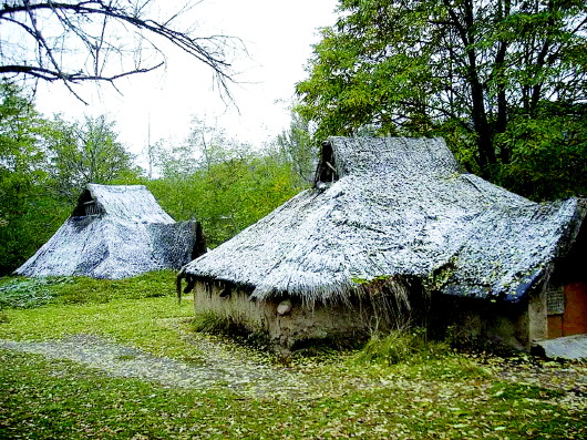 那是一个渴望生育和繁殖的年代,伏羲和女娲兄妹生下了一大群孩子。有男孩,也有女孩,他们是大地湾第一代居民。随着儿女增多,附近一些部族的幸存者,也顺着葫芦河和清水河来到了大地湾。大地湾的居民越来越多。起初,他们居住在深穴式窝棚里,后来又在临河平地上建起半地穴式房子,还开始生产比较粗糙的陶器,并在向阳坡地上开始种植糜子。