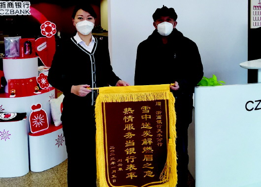 本报讯 近日,市民刘某家属将一面印有“雪中送炭解燃眉之急 热情服务当银行表率”的锦旗送到浙商银行天水分行,表达对该行在他们遇到困难时无私援助的感激之情。