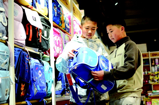 2月10日,家长和学生在秦州区的书店、文具店选购教辅书和书包、学习用具等。近日,天水市各中小学校春季学期陆续开学,学生们及早准备好学习用书和文具,迎接新学期。 新天水·天水日报记者