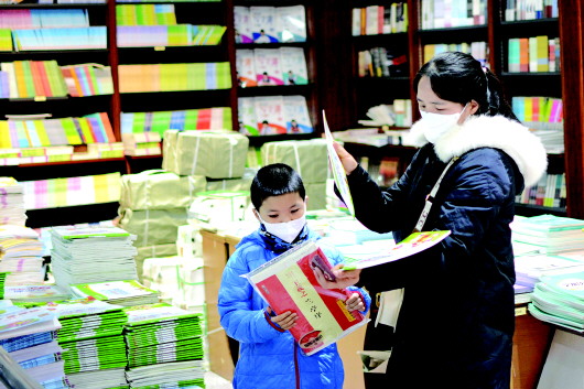 2月10日,家长和学生在秦州区的书店