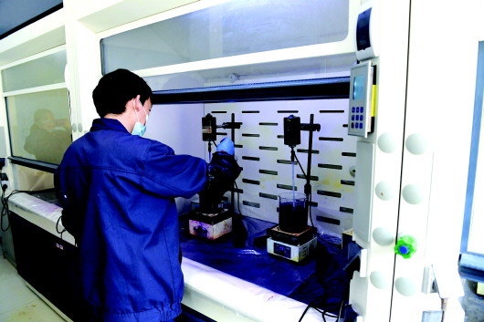 近日,走进甘肃翔达新颜料科技股份有限公司,技术人员正在进行颜料新产品的沉淀试验。