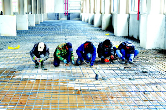3月20日,记者来到清水县红堡生态工业园区一区基础设施和中小企业孵化园项目建设现场。园区内机器轰鸣,车辆来回穿梭,工人们头戴安全帽,紧张有序进行施工。在一间已经完成主体工程的厂房里,十几个工人正在地面上绑扎钢筋,为即将硬化厂房地面做准备。