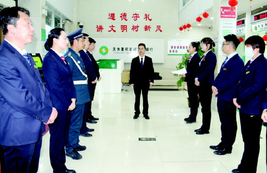本报讯 自“进网点 站大堂 提服务”活动开展以来,麦积农村合作银行切实增强抓好能力作风建设的责任感和紧迫感,积极引导管理人员牢固树立“立足一线、服务一线、干在一线”的工作理念,在攻坚重点任务中检验能力作风建设成效,推动活动不断走深向实。
