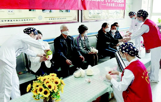▼市二院团委组织团员青年、青年志愿者成立“爱心小组”,在血液净化中心开展为特殊患者献爱心活动。医务人员给患者送早餐、聆听患者诉求、提供“爱心”帮助,用更加精准、有温度的服务让患者感受到医院的关怀,积极构建和谐医患关系。
