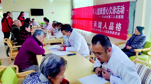 ▲医务人员走进养老院开展关爱老年人健康爱心义诊活动。医务人员详细了解老人的生活情况,为他们进行身体检查,并耐心细致指导他们在日常生活中正确用药,引导他们养成良好的健康生活方式。 朱文慧 摄
