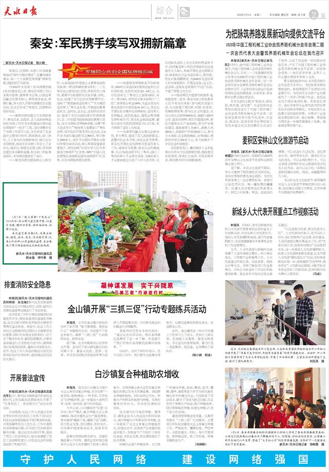 自2019年全省第十届双拥模范城(县)创建命名以来,秦安县双拥工作以实现中国梦、强军梦为主线,以推进军民融合发展为核心,聚焦服务备战、保障打赢,深入持久开展双拥模范县创建活动,在全县形成了军爱民、民拥军的良好局面。