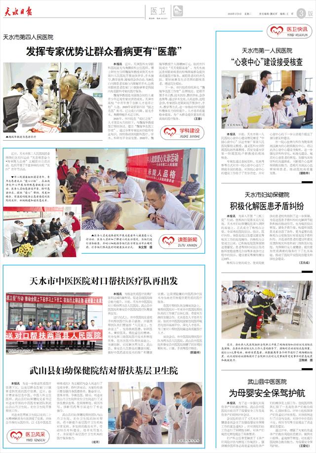 市一院心血管内科作为陇东南地区最大的心脏病救治中心,将以此次心衰中心建设为契机,进一步强化学科科学化、标准化建设,规范对心衰患者的管理,加强与其他学科的沟通联系,不断提升心血管疾病救治能力,造福天水地区心血管疾病患者,推动医院高质量发展。 (雷晓亭)