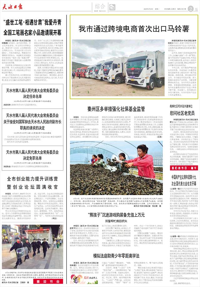我市通过跨境电商首次出口马铃薯   本报讯【新天水·天水日报记者李旺旺】6月16日,张家川回族自治县举行跨境电商农特产品出口发车仪式,这是我市通过跨境电商实现马铃薯的首次出口。