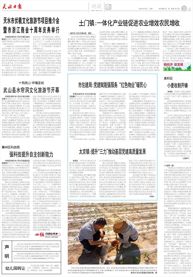 麦积区 小麦收割开镰   本报讯 6月20日,麦积区2023年小麦收割开镰仪式在麦积镇街亭村举行,拉开了全区“三夏”小麦机收工作的帷幕。