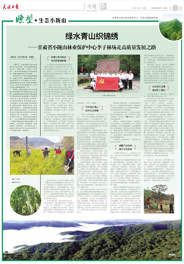 绿水青山织锦绣 ——甘肃省小陇山林业保护中心李子林场走高质量发展之路 新天水·天水日报记者 余碧波