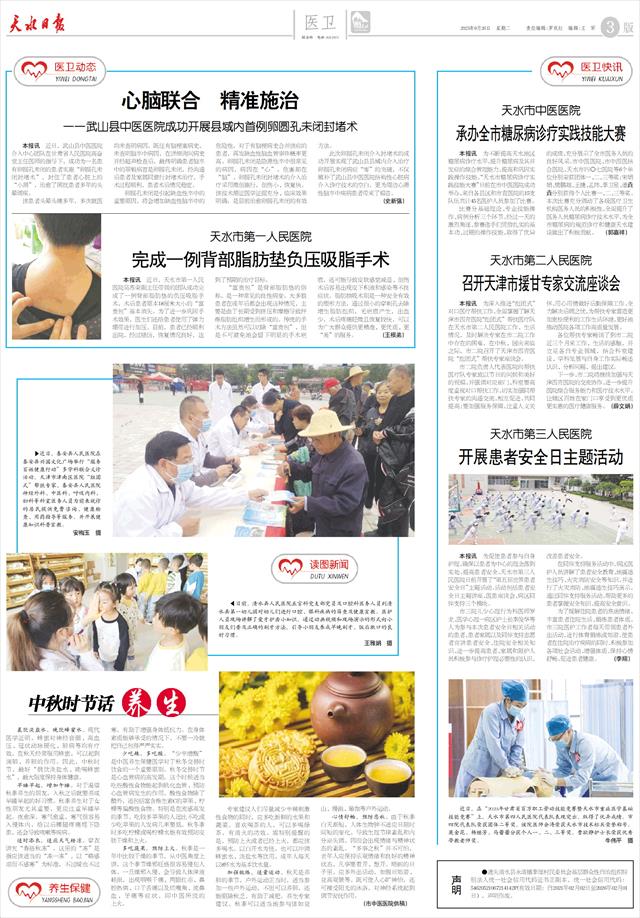 本报讯 为促使患者参与自身护理,确保以患者为中心的理念落到实处,提高患者安全,天水市第三人民医院日前开展了“第五届世界患者安全日”主题活动。活动包括患者安全日主题讲座、医患座谈会、病区同伴支持三个模块。