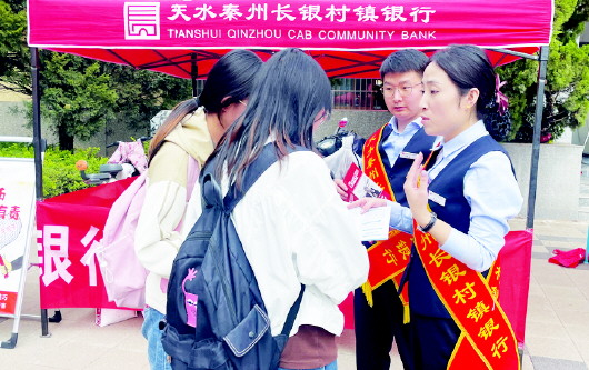 ▲9月26日,天水秦州长银村镇银行走进天水师范学院开展金融知识宣传活动,提升师生对洗钱犯罪和电信网络诈骗的鉴别能力和防范意识,为预防和遏制金融诈骗、构筑良好的金融生态环境贡献金融力量。 王思远 摄