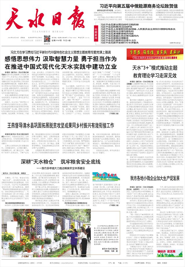 深耕“天水粮仓” 筑牢粮食安全底线   (上接第一版)