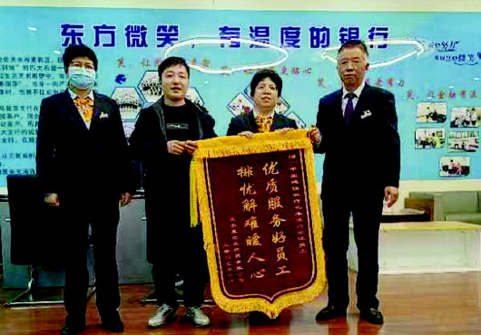 ▲日前,建行花牛支行全力协助客户及时收回因账号输入错误而转出的36万元货款,客户专程送去锦旗对该行工作人员表示感谢。 刘小平 摄