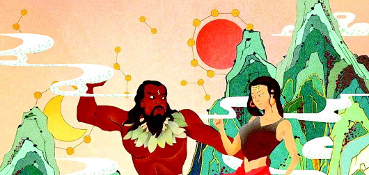 华胥氏去世后,伏羲、女娲兄妹二人靠采野果打猎为生,一晃长到十七八岁。一天,妹妹对哥哥说:“现今天下的人太少,我们兄妹如能结为夫妻,生儿育女,平安度日,白头偕老该有多好啊!”哥哥听罢沉思良久后对妹妹说:“结婚生儿育女是终身大事,不可儿戏,首先要有机缘,还应有天作之合,上天作证,大地为媒。”