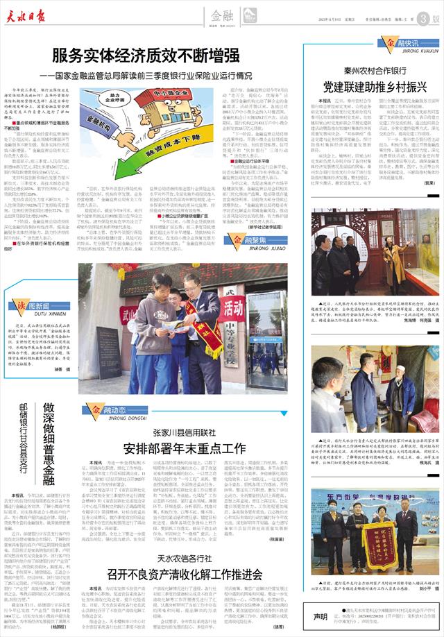 会议强调,全社上下要进一步提高政治站位,强化担当意识,在全面完成各项经营指标的基础上,以敢于啃硬骨头和涉险滩的决心、善于攻坚克难和破解难题的信心,一以贯之将风险化险作为“一号工程”来抓。要查摆短板弱项,全面推进重点任务,始终坚持省农信联社党委工作总要求和“补短板、夯基础、化风险”工作总思路不动摇,紧盯重点领域、薄弱环节,仔细查摆、分析原因、找准对策、积极作为,以等不起、慢不得、坐不住的紧迫感和责任感,锚定目标赶进度,确保各项任务指标上档升级。要狠抓工作落实,鼓足干劲主动作为,牢固树立“一盘棋”意识,上下联动、优势互补、形成合力,全面落实日推进、周通报工作机制,多渠道提高社保卡激活数量,多节点提升批量开卡工作效率,多措施强化清收化险效果,以一如既往、一往无前的奋斗姿态,狠抓各项工作落地、开花结果。要压实工作职责,激发干事创业动力,全员要坚持认识上再提高、思想上再重视、责任上再压实,让党建引领更加有力、工作流程更加规范、各类服务更有质效,以必胜的决心和实际有效的行动打赢打好今年收官战,谋划好明年开局篇,奋力谱写张家川县信用联社高质量发展新篇章。