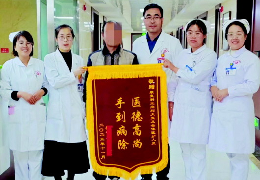 本报讯 日前,患者陈先生将一面绣有“医德高尚 手到病除”的锦旗送到了武山县中医医院康复科全体医护人员的手中,对他们细致认真的工作表达感激之情。