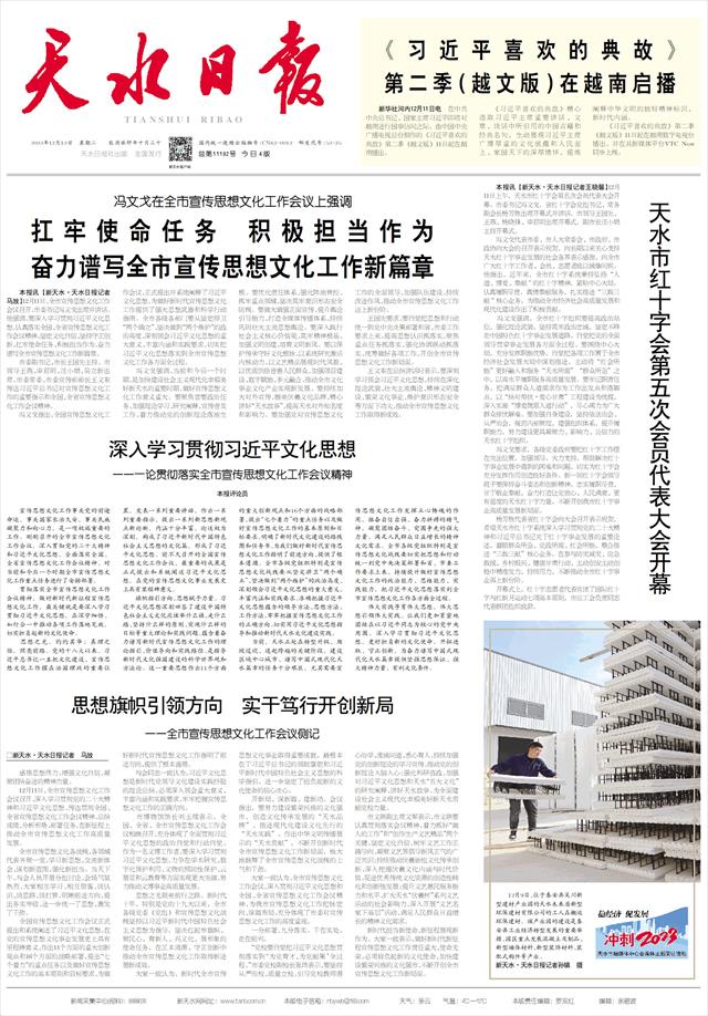 思想旗帜引领方向 实干笃行开创新局 ——全市宣传思想文化工作会议侧记   □新天水·天水日报记者 马放