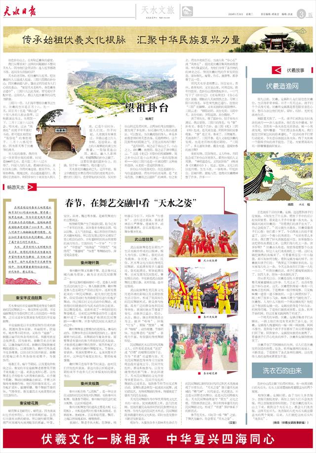 天水的老百姓,把伏羲叫人祖爷,把伏羲庙叫人宗庙或人祖庙。三阳川西隅的卦台山,因伏羲始画八卦、肇启文明而成为人们心里的圣山。“家居天水名邦外,身在羲皇古道中”,三阳川人以此为荣,常写成对子配中堂。这里的人,都以人祖伏羲爷的后代为骄傲。