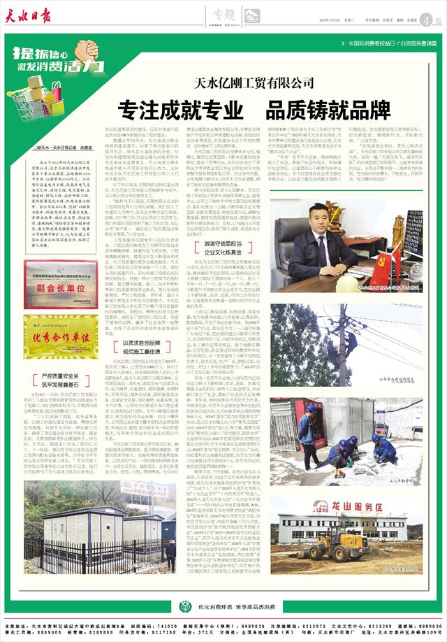 对于天庄高速、天陇铁路这样的重大项目,天水亿刚工贸有限公司能够参与其中,足以显示该公司的雄厚实力。