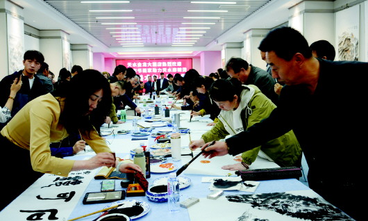 ◤4月10日上午,由天水市文化馆、白银市美术馆、天水市美术家协会、秦州区文体广电和旅游局主办的助力天水麻辣烫——白银市书画家书法美术作品惠民展在天水金龙大酒店开展。