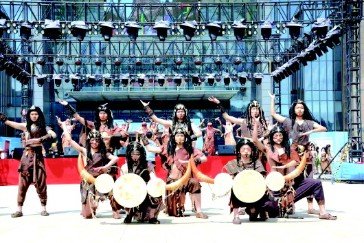 演出现场,伴随着悠扬的旋律,歌曲《天河热土》《心中的布达拉》《今天是个好日子》《哈密瓜》等精彩的演出吸引众多游客观看。