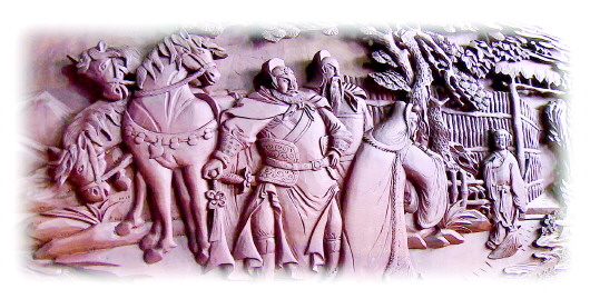 因着榜沙河的滋润,“民武”木雕摆件大多采用本地质地细密坚韧、不易变形的梨木,所刻作品温润而不浮躁,沉稳而不轻浮。最具特色的是,在题材选取上极富传统文人气息,尤其是施彩摆件,具有较高的艺术水准。这些千姿百态的图案,将生活场景和神话故事有机融合在一起,高大悠远、古拙秀雅,达到了“变形不失真,夸张亦传神”的艺术境界。