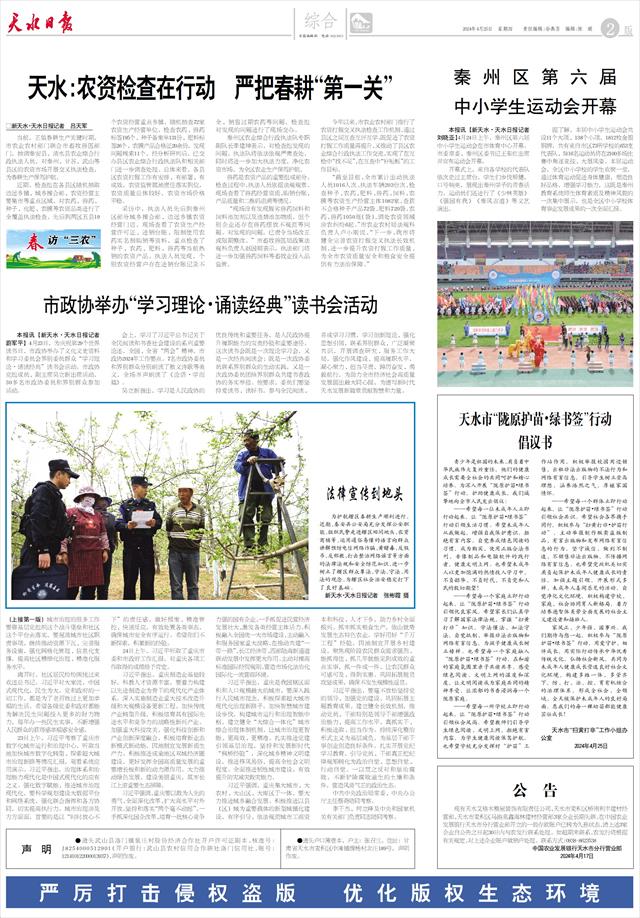 天水:农资检查在行动 严把春耕“第一关”   □新天水·天水日报记者 吕天军