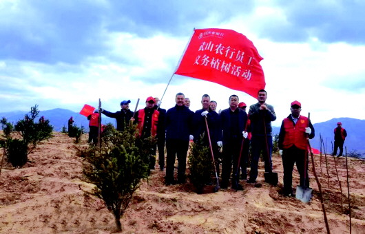 本报讯 近期,中国农业银行天水武山县支行积极响应政府绿化号召,组织人员组成义务植树队,在武山县榆盘镇盘龙山开展义务植树,为家乡绿水青山贡献农行力量。