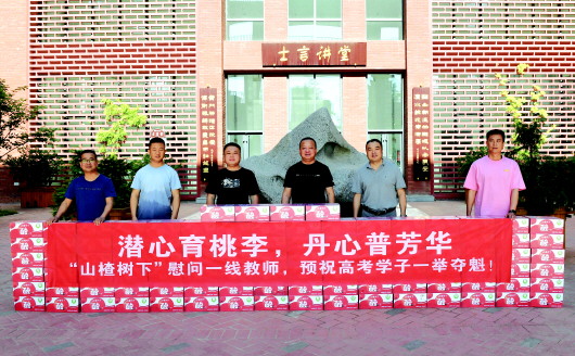 当日,秦州区银城糖酒副食部先后到天水一中、天水一中麦积校区、天水一中秦州分校,为高三教师捐赠价值2万元的山楂树下饮料。爱心企业负责人廖宝安说:“公司一直关注教育事业,重视社会责任,在创造企业价值的同时,将持续开展各项社会公益活动,真正做到取之于社会、回馈于社会,为老师尽绵薄之力,为学子加油鼓劲。”