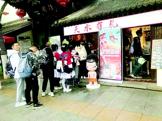 近年来,“盖章式旅游”在年轻人中尤为受欢迎,并逐渐成为旅游消费的新趋势。为此,天水柒礼文化创意有限公司在“天水有礼”门店特别设置了免费加盖“隐藏章”的区域。这种场景的搭设,不仅能让游客更深入地了解天水历史文化,还增加了趣味性和文化深度,吸引了无数盖章星人前往。“实体销售场景的打造对文创产品的销售具有重要意义,一个值得逛的文创商店才能吸引更多消费者踏足,进而助推文创产品销售。”马欣说。