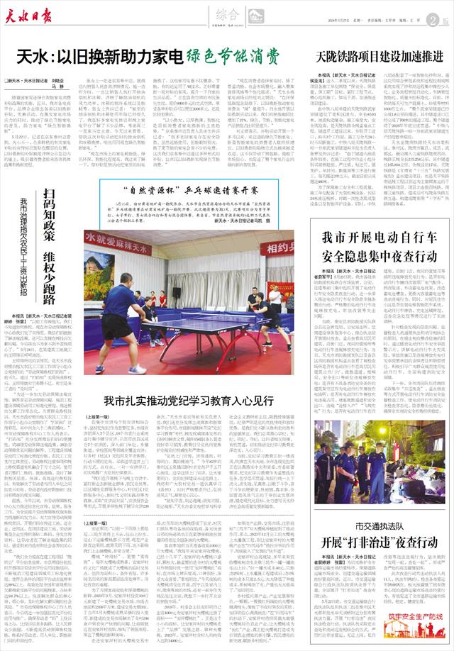 当前,党纪学习教育正如一缕清风,吹拂在天水大地。全市各级党组织正在认真落实中央和省委、市委部署要求,把党纪学习教育作为重要政治任务,在学思用贯通、知信行统一上下功夫、求实效、见真章,以敢于斗争、善于斗争的硬脊梁、铁肩膀、真本事,全面营造风清气正的干事创业发展环境,锚定现代化目标,全力谱写天水经济社会高质量发展新篇章。