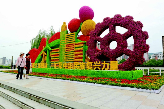 大型立体花坛喜迎八方来客 新天水·天水日报记者蔚军平 摄