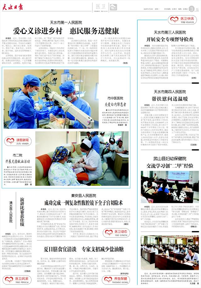 本报讯 近日,天水市第一人民医院深入帮扶村武山县城关镇雷山村开展义诊慰问活动,用实际行动解民忧、暖民心,践行初心使命。院领导、帮扶干部、支部书记、党员代表、医疗专家、退休老党员等30余人随行前往。