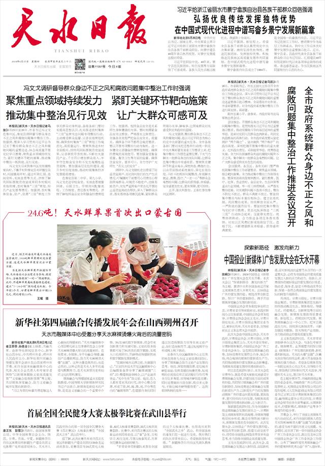 本报讯【新天水·天水日报记者马凯】6月26日,市委副书记、市长王国先主持召开全市政府系统群众身边不正之风和腐败问题集中整治工作推进会议,深入学习贯彻习近平总书记关于整治群众身边不正之风和腐败问题的重要论述重要指示批示精神,全面落实中央和省、市委部署要求,对全市政府系统集中整治工作进行再安排、再部署。