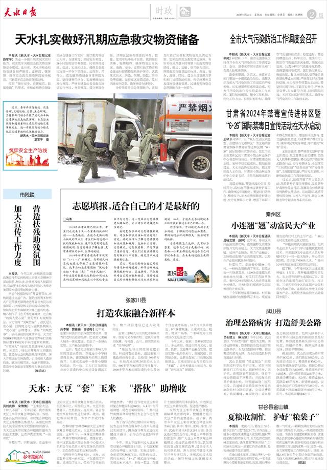 仲夏时节,四野遍绿。走进秦州区的大豆玉米带状复合种植示范点,层层梯田上,间作的玉米、大豆苗长势喜人,生机勃发。连日来,各合作社抢抓有利时机进行除草、疏苗、施肥等田间管理,为丰产丰收打好基础。