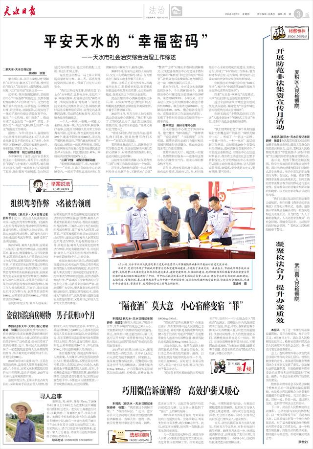 天水市综治中心成立于2020年8月,建立健全“随叫随驻”“指挥调度”“应急调度”“日常调度”工作机制,统筹协调行业部门力量对相关领域问题进行协调督办,推动社会治理各项工作落实落细。