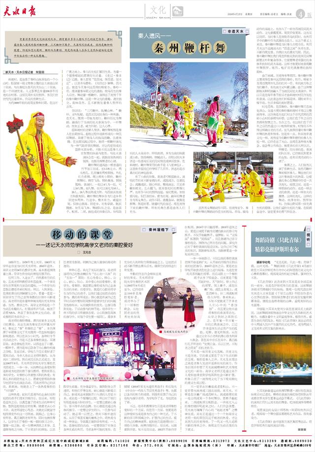 天水是一座历史文化名城,历史文化不是历史,它的意义更在于当下生活的鲜活呈现。秦腔是秦人之声,天水及其周边之地是老秦人发迹并逐渐壮大的地方。作为引领并形塑了天水地域精神和艺术传统文化的一部分,高学文老师正是通过其个人爱好由课堂到学校再到社会不断扩展,形象示范了一地传统文化于当下现实转化的意义生成过程。